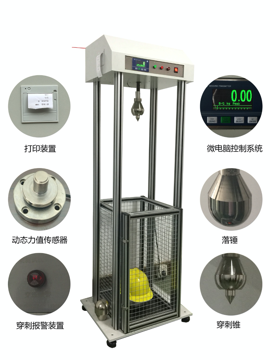 本设备根据头盔国标《GB811-2022 摩托车、电动自行车乘员头盔》研制,用于检测头盔的耐穿透性能,操作方便,广泛应用于头盔生产企业、各大质检单位及检测站。